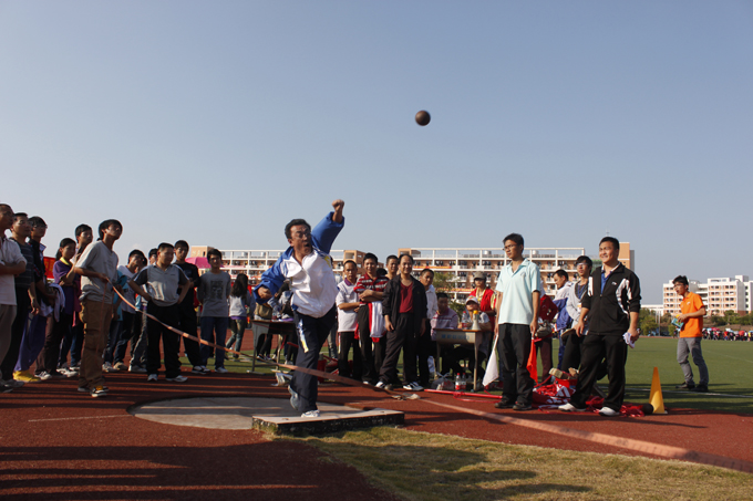 学生赛事格外精彩,而教职工比赛也毫不逊色,冲刺瞬间、激情碰撞等精彩表现闪亮赛场。在教职工中年组男子铅球决赛中,选手们在举手投足间使出全力,一投到底。比赛共有28名教职工进行角逐。经过决赛,邹东平、车辉、李春来等6名教师在决赛中脱颖而出。工商管理学院邹东平荣获第一。