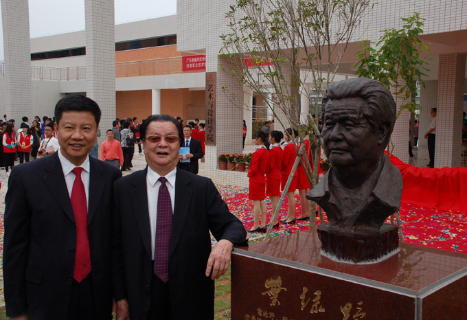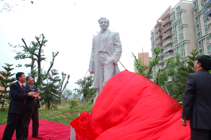 萧殷塑像揭幕仪式上,我校党委副书记韦荣表示,在我校安奉萧殷先生立像,就是要让先生的精神继续引领我们、激励我们像先生一样服膺真理,坚守良知,奉献祖国,服务人民。随后市委书记陈建华、萧殷之子萧权权、我校校长刘安华及党委副书记韦荣共同为萧殷塑像揭幕。
