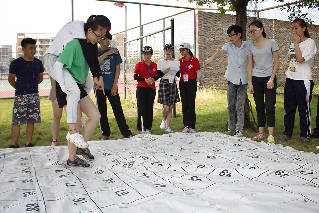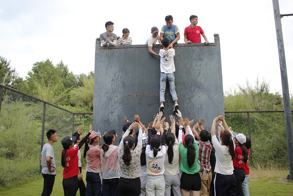 在全体人员拍照合影留念后,学生代表们分成两个小组以饱满的精神和充沛的体力投入到训练中。无论是考验信任度的背摔、毕业墙,还是考验团结合作的雷阵、穿越沼泽,都充分展现我校青年学生朝气蓬勃的面貌和团结友爱的精神。
