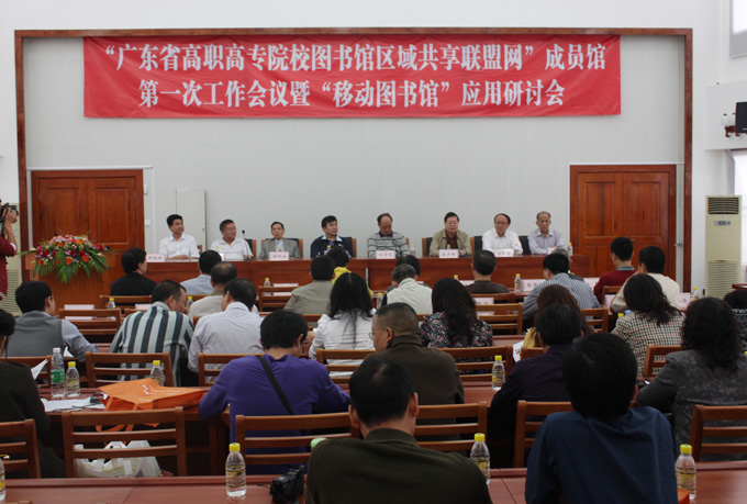2011年10月27日,“广东省高职高专院校图书馆区域共享联盟网”成员馆第一次工作会议暨“移动图书馆”应用研讨会在我校行政楼C108召开。