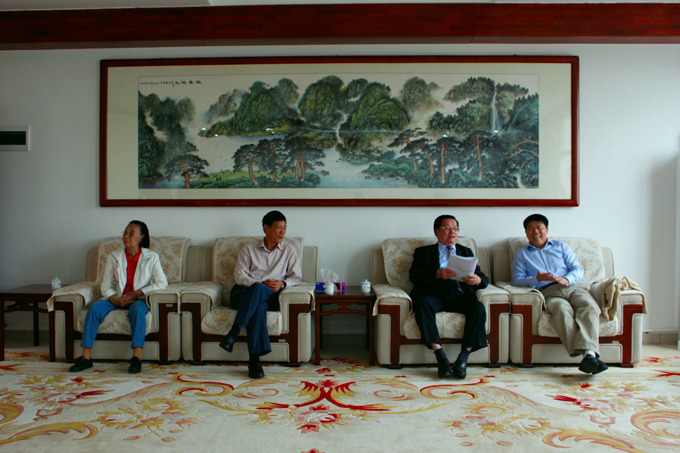 10月13日,我校校友、著名画家叶绿野教授一行来访我校,我校领导班子热情地接待了一行,并在贵宾室召开交流会,共同商议叶绿野艺术楼落成典礼事宜及画室布置情况。