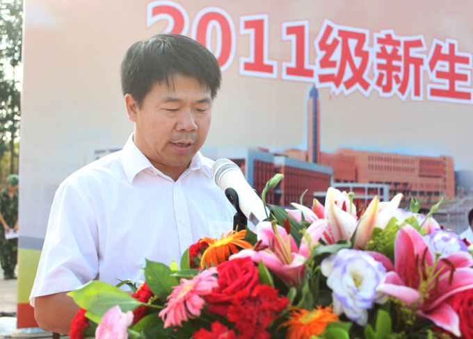 9月13日,我校2011级新生开学典礼暨军训动员大会在足球场隆重举行。校党委书记高仁泽、校长刘安华等校领导,市武警支队队长黄福民、市武警支队参谋长张翼及2011级4000多名我校新生参加了此次大会。大会由副校长陈农心主持。