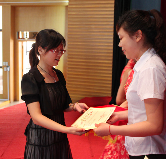 毕业典礼在雄壮的国歌声中拉开序幕。参加典礼的领导为毕业生代表颁发“毕业证书”,为优秀毕业生代表颁发了“优秀毕业生证书”等。