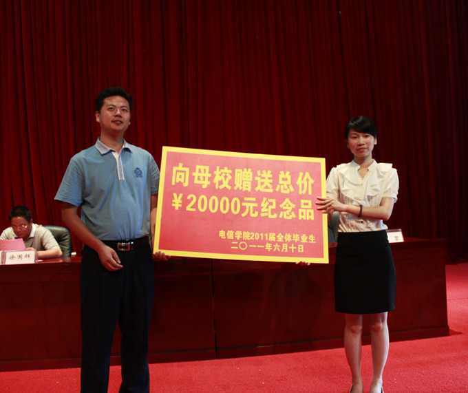 同时,各学院毕业生还为学校送来毕业纪念品,以此感谢学校及学院老师对他们的悉心栽培。