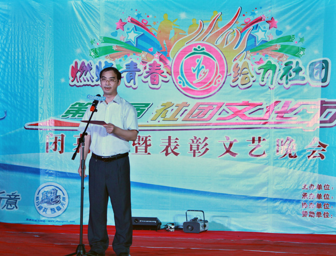 5月26日,以“燃烧青春,给力社团”为主题的第四届社团文化节闭幕式暨表彰文艺晚会在灯光篮球场圆满落幕。我校党办、纪委、教务处、学工处有关负责人,蒙牛集团河源分公司副总经理王建平以及部分师生参加了此次活动。