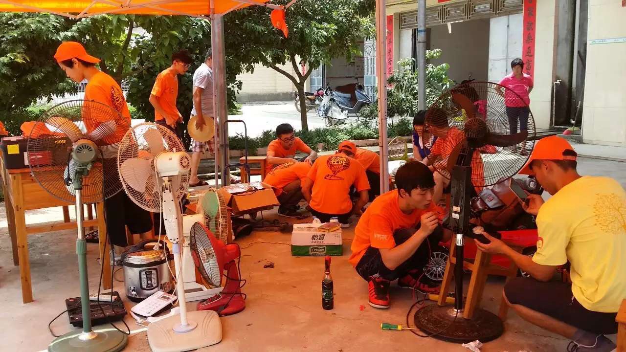 义务维修队作为学校“三下乡”社会实践活动的品牌项目之一,是志愿者们一个实践与学习的过程。“三下乡”志愿服务活动开展至第三天,义务维修队已为居民维修家用电器共126件。志愿者们运用自己在学校所学习的专业技能为村民们认真修理家用电器,志愿者在高温环境中为村民修理一件件小家电,汗水早已浸湿他们的衣衫,但却丝毫不减他们维修的热情,依然坚守在志愿服务的一线岗位上。
