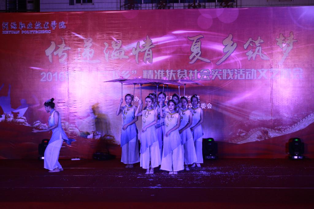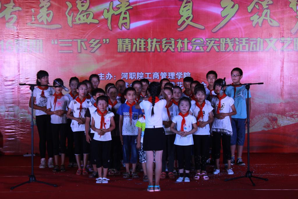 本次晚会通过歌曲、朗诵、小品等表演形式向黄花村的父老乡亲们奉献了一场精彩纷呈的艺术盛宴。晚会以“传递温情•夏乡筑梦”为主题,结合双精准扶贫内容,展示了在中国共产党的带领下我国农村各项事业蓬勃发展,以及河职院学子充满活力、服务社会、担当社会责任的崭新面貌,赢得了村民们的交口称赞。
