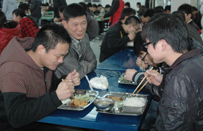 当天下午晚餐时间,热热闹闹的学生饭堂出现了一个熟悉的身影,他就是我们的高书记。高书记与几位同学同坐一桌,嘘寒问暖,了解他们在校期间学习、生活和思想状况,并与他们共进晚餐。高书记还对学工处和资产后勤处有关负责人提出一些工作建议,让相关部门多为学生着想,提高学生在校的归属感和幸福感。