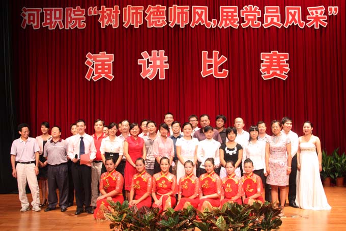 最后,学校党委副书记韦荣作了总结发言。他首先对各学院、各工作人员及选手们的充分准备、大力支持表示感谢,对本次活动取得圆满成功表示祝贺。同时,他指出,此次举办演讲比赛是为落实开展创先争优活动,配合“我为党旗添光彩”主题实践活动及师德建设主题教育月活动,旨在通过比赛等活动进一步加强我校党员干部良好的道德操守;打造高尚的人格魅力;进一步坚定理想信念,增强大局意识、服务意识和法律意识,从而达到讲党性、重品行、做表率的思想境界,真正做到以身立教,为人师表,共同开创我校工作新局面。