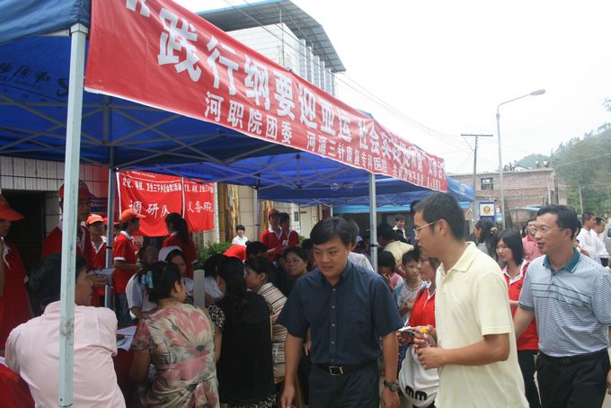 早上,我校医疗服务队协助河源市三针康复专科医院在合水镇人民政府旁设点服务,开展“践行纲要迎亚运,社会实践促和谐”的义诊活动。