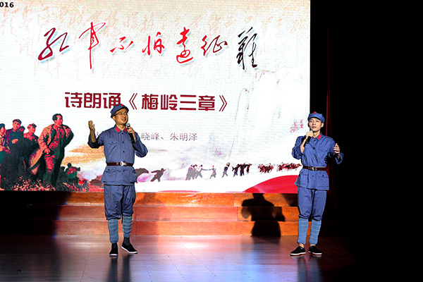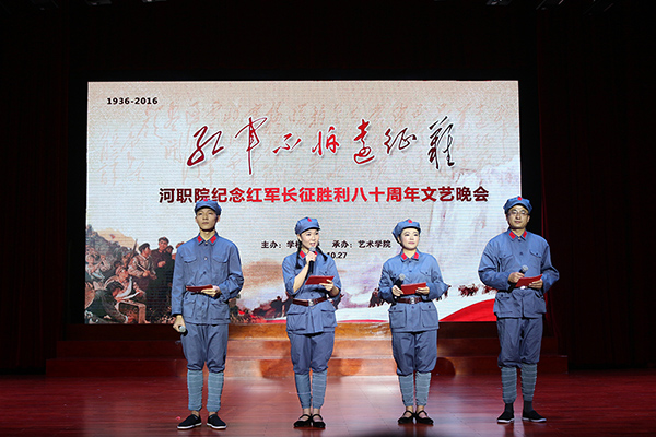 据悉,此次文艺晚会是我校开展“纪念红军长征胜利八十周年”系列活动之一。旨在进一步引领我校师生深入学习和弘扬长征精神,凝聚起全党全军全国各族人民不忘初心、继续前进的信念与力量,也充分展现了我校继承和发扬红军长征精神的炽热情怀。
