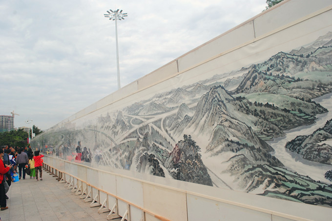 《东江百里图》全长111米,高1.22米,主要以东江为对象,展现了东江沿岸的山水和客家民俗风情。