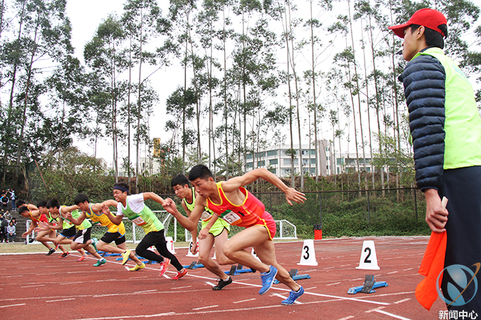 蹲踞式的起跑,啦啦队的激励,裁判员的哨声,调动了现场激烈紧张的气氛。16体育教育2班的黄健最终以11秒37的出色成绩将冠军揽入囊中,来自15体育教育4班的林家伟和14体育教育2班的吴壮鹏分别以11秒46和11秒51的成绩获得亚军和季军。