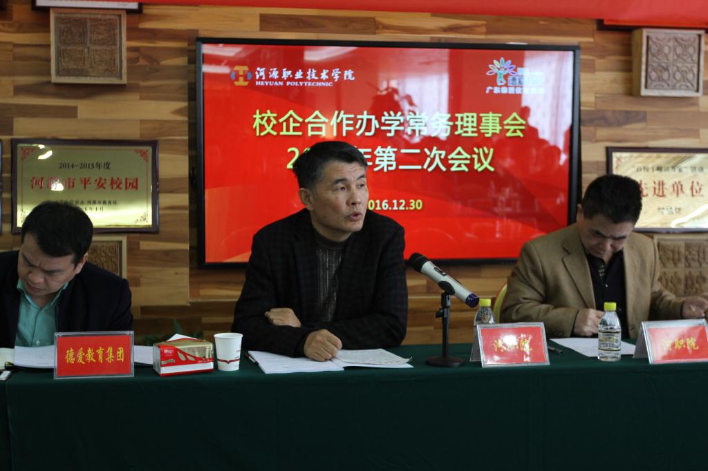 (科研处通讯员 涂华锦 文字 李雁嘉 摄影 朱启泉)12月30日,我校在北大附属德爱国际学校召开校企合作办学常务理事会2016年第二次会议。校长陈德清、副校长唐汉芳出席会议。