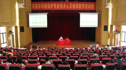 7月15日,由我校主办的河源市环境保护专业技术人员培训班在学术报告厅举行,此次培训邀请广东环境工程职业学院党委书记陈文涛、王文祥博士为学员授课,来自全市五县两区环保系统的265名专业技术人员参加了培训。