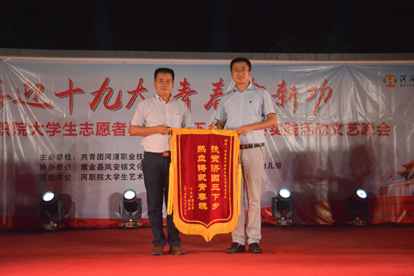 7月16日, 我校于紫金县凤安镇下石村文化广场举行2017年暑期“三下乡”社会实践活动文艺晚会。团委书记陈晓峰、凤安镇常务副镇长陈雪岳、校团委全体老师、下石村村干部出席晚会,下石村村民、下石小学学生及“三下乡”全体志愿者也一同观看了晚会。