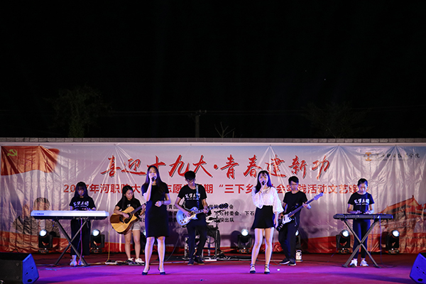 晚会以“不忘初心跟党走,青春喜迎十九大”为主题,以歌舞、魔术、话剧为等节目为村民们带来了一场精彩的表演。晚会在青春励志的《奔跑》《最初的梦想》中拉开序幕,舞蹈《秀色》以轻盈优美的舞姿,充分展示了大学生青春向上的良好风貌;由下石幼儿园及下石小学的学生带来的《道德三字经》《彩虹的约定》以天真活泼的姿态展现了小朋友率真可爱的天性;歌曲《当那天来临》《我的中国心》唤起了观众们共同瞩目的中国梦想;话剧《志愿者》展现当代大学生互相帮助、助人自助、无私奉献、不求回报的精神,走进人们心灵深处;魔术《红白幻影》以跳跃的节奏、高超的技巧赢得了在场观众的阵阵喝彩。节目精彩纷呈,现场气氛高涨。最后,晚会在歌舞《客家方圆》中圆满落幕。