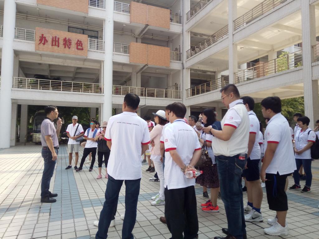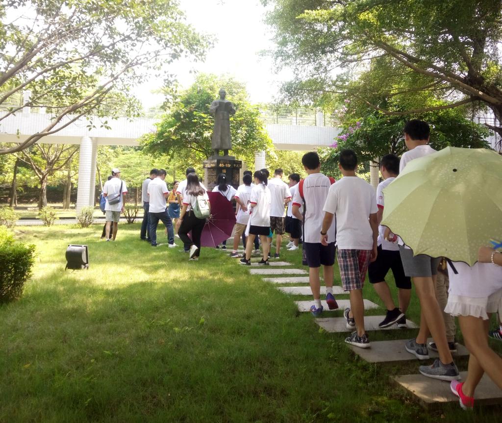 当天上午九点,香港青少年交流团在黄志鹏副书记的热情接待下,先后游览参观交流中心、景观桥、叶绿野艺术楼、图书馆、教学楼(孙中山雕像)、老隆师范纪念楼(黄麟书铜像),并对我校的历史沿革、办学特色、校园建设等方面有初步的了解。