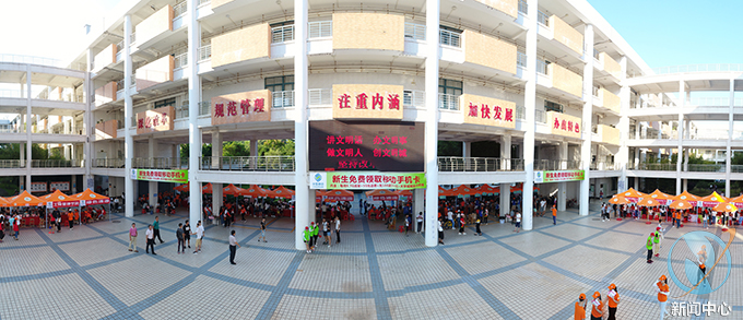 九月的河源,白日里仍有几分盛夏的燥热。在这个充满丰收喜悦的美好时节,我校迎来了2017级新生入学。16日上午8点,紧张的迎新工作拉开序幕,校园内各迎新工作点早已是热闹非凡,志愿者正带领着新生们办理入学手续,解答新生问题,迎新工作井然有序进行。
