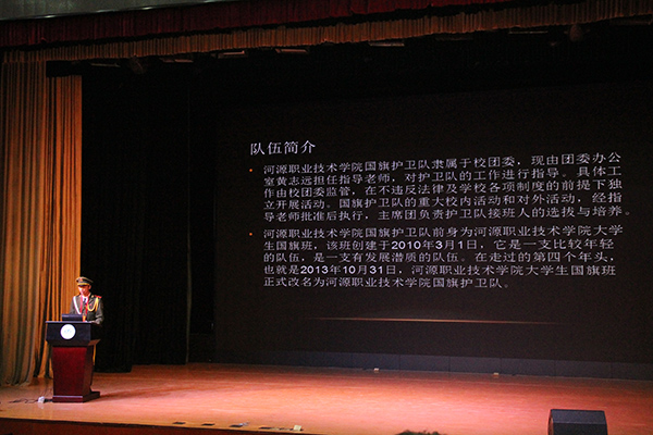 我校尹蔼瑜同学在十佳升旗手评选活动现场