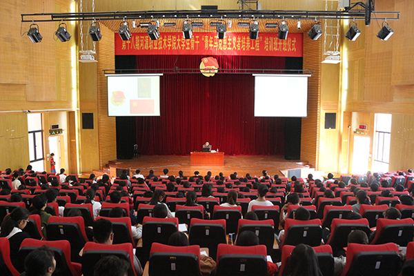 伴随着激情澎湃的团歌过后,艺术与设计学院团总支书记张超为培训班全体学员作了《共青团基本知识》教育讲座。他围绕共青团的光荣历史、共青团的基本知识、团章的解读及十九大的内容进行授课,向学员们全面系统地介绍了共青团的发展历程、团章的修正与完善等。最后,张超书记提出,希望学员们能用行动去爱国,多关注时事政治;坚持党的路线不动摇;坚持党建带团建;坚持把竭诚服务青年作为团的一切工作的出发点和落脚点。