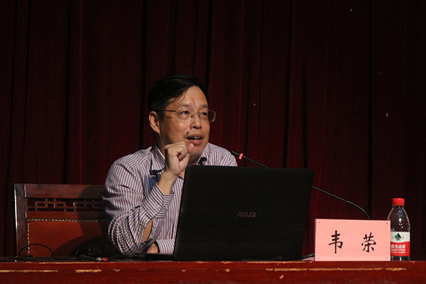 “东江水长,演绎人才辈出;梧桐山秀,荟萃群英翱翔。”讲座上,韦荣书记以《易游app入口站官网校本文化》为蓝本,从我校的校本文化、社会主义核心价值观、弘扬校本文化以及践行社会主义核心价值观三大方面展开论述。运用图文并茂的PPT以及形象生动的语言,韦荣书记详实具体地为在场观众介绍了我校的地理位置、历史沿革、文化基石、校训、教风、学风、竞赛文化、社团活动、环境文化等内容,多角度向同学们阐释了我校校本文化的深刻内涵。同时,他对校本文化与社会主义核心价值观之间的关系作了深刻的解读,并寄语我校学子要积极主动弘扬我校校本文化、践行社会主义核心价值观。授课现场,学员认真记录,课堂氛围浓厚。