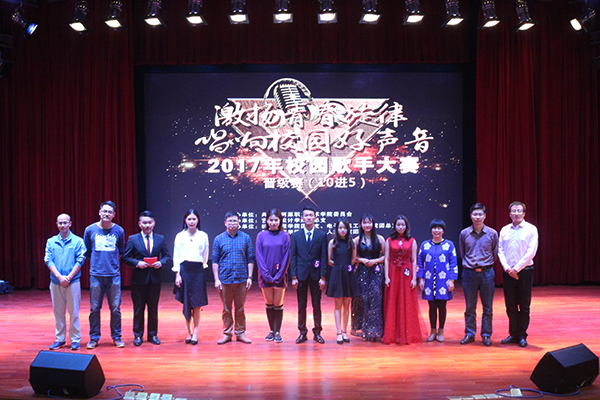 11月2号晚,我校于艺术楼演播厅举行以“激扬青春旋律,唱响校园好声音”为主题的2017年校园歌手大赛十进五晋级赛。我校团委书记陈晓峰,艺术与设计学院院长杜伟祥、音乐表演专业主任刘颂章、音乐专业教师周艳妮等相关领导、老师担任了此次晋级赛的评委。