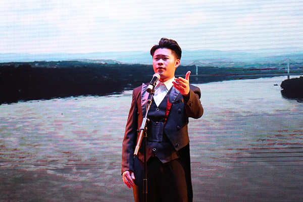 校园歌手蓝睿与其助唱嘉宾演《共筑中国梦》