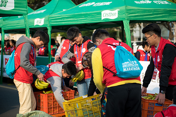 志愿者们体验马拉松