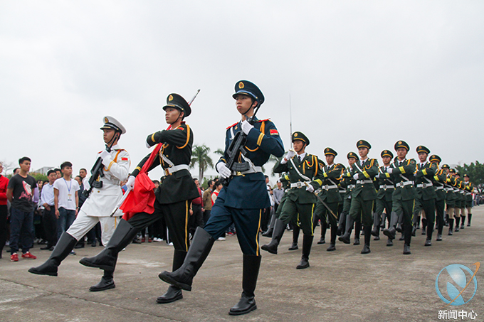 升旗仪式上,国旗护卫队的旗手们着装整齐,踏着铿锵有力的正步,护送着鲜艳的五星红旗走向升旗台。伴着慷慨激昂的《义勇军进行曲》,五星红旗在全体师生的注目下冉冉升起。