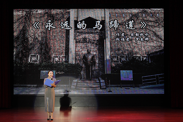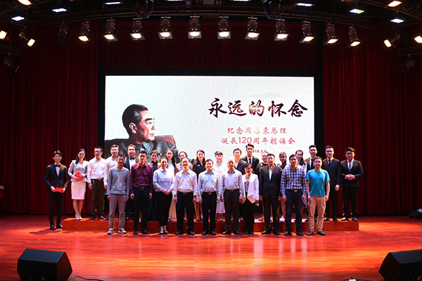 朗诵会由《这个人》视频短片拉开帷幕。活动现场庄严肃穆,各位朗诵者带着对周总理的无限崇敬之情,深情朗诵了《生别死离》、《海棠花祭》、《我就是你的儿子》、《周总理办公室的灯光》、《周总理的日历》、《永远的马蹄莲》、《我愿做周总理胸前的那枚小像章》、《今日中国,如您所愿》、《告慰》等名家诗文作品,同时演唱了歌颂周总理的优美歌曲,一段段感情饱满、慷慨激昂的字里行间无不表达着对周恩来总理的崇敬与缅怀之情。