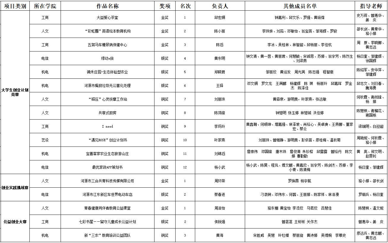 “挑战杯·创青春”广东大学生创业大赛获奖名单