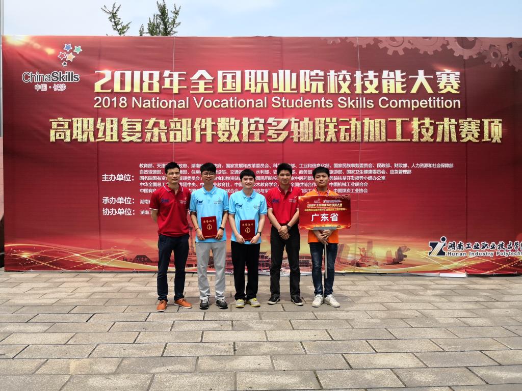 5月18日, 2018年全国职业院校技能大赛高职组“复杂部件数控多轴联动加工技术”赛项在湖南工业职业技术学院落下帷幕。经过激烈的比拼,我校2015级模具设计与制造专业文荣生、姚春芝同学凭借扎实的专业技能获得全国二等奖的优异成绩。
