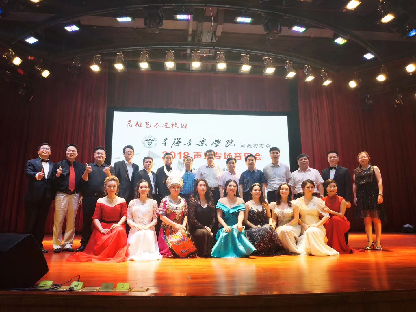 一曲《峡江情歌》为此次音乐会拉开序幕,2011年毕业于星海学院的李伟健,他的歌声让大家感受到阿妹对幸福生活的憧憬和淳朴阿哥的情真意切,也传达出作曲家对于这片土地的深厚情谊。古往今来,黄河以其雄壮的气势,奔腾在中国大地上,滋养着一代又一代中华儿女。候鑫歌唱的《黄河颂》,是黄河的颂歌,是时代的颂歌,是中华民族的颂歌,是中华民族生生不息、坚忍不拔、永往直前的颂歌。黄丽梅的一曲《昭君》,把大气磅礴的浩瀚之势与婉约凄美的忧郁之情完美融合,让人们深刻感受到声乐作品带来的无限魅力。郑晓戈的《跟我走》、《我的太阳》,欧阳山《在那遥远的地方》、《山歌唱出好兆头》,许乃胜的《在那桃花盛开的地方》、《重归苏莲托》,蓝金利《七月的草原》,陈松林《我的爱人你可听见》、欧阳雪清《海风阵阵愁煞人》等校友悠扬的音乐回响耳边,动人的歌声萦绕现场。此次音乐会还有星海音乐学院河源校友从国外专门回到家乡的叶穗星,他给大家带来《我不再爱你》、《我的末日就在眼前》,同时邀请了《美丽的绿谷》词作者邹国忠,此曲创作于2012年,是一首表现客家古邑风情、词曲清新流畅、传唱知晓度较高的歌曲。“动人之音,莫大于情。”情为歌之魂,艺术学院刘颂章老师《那就是我》把自己从歌曲中感受到的东西真实地歌唱出来,给予歌曲生命的活力。最后所有演出嘉宾合唱一首《我爱你中国》,为整场音乐会画上完美音符。
