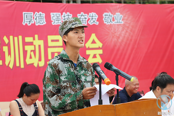 9月10日上午,2018级新生开学典礼暨军训动员大会在我校足球场隆重举行。我校党委书记韦荣、校长陈德清、副校长唐汉芳、党委副书记叶国英、副校长赖小景等校领导班子,河源市武警支队大队长伍时就及全体教官,我校各处室及院部主要负责人、师生代表以及2018级全体新生参加本次动员大会。大会由副校长陈农心主持。