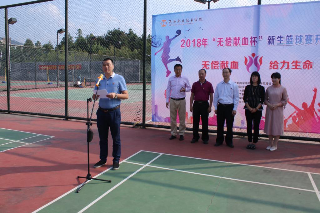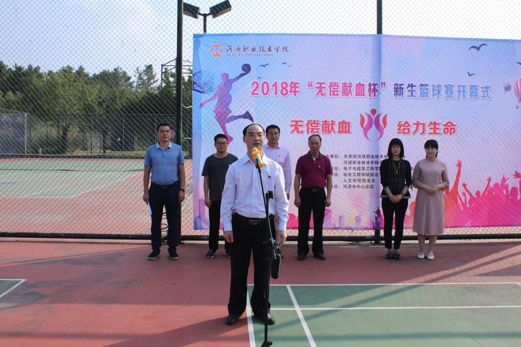 赖小景副校长宣布易游app入口站官网2018年“无偿献血杯”新生篮球赛开幕