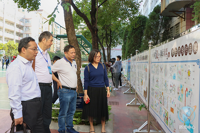 专家代表参观了河源市第三小学的传统美德宣传墙、植物园、教学楼、运动场等基础教学场所,根据家长志愿者队的介绍,了解该校的基本教学情况。并深入参观了解河源市第三小学的书法室、手工制作室、民乐室等第二课堂的开展情况,观摩学生作品,与学生亲切交流。专家代表与校方相互交流探讨兴趣班的课程设置原理,分享“兴趣育人”和“第二课堂”办学经验。
