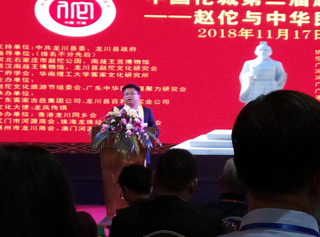 11月17日至18日,“中国佗城•第二届赵佗文化旅游节暨全球岭南宗亲寻根问祖恳亲大会”在广东龙川县佗城古镇隆重举行。原广东省委统战部部长、政协副主席李统书,原海军广州基地政治部副主任、广州市文联主席乔平,原河源人大常委会副主任、龙川县委书记张鉴林等领导出席了活动。我校红色文化研究中心主任、公派中山大学国内高访学者杨党校,本着“坚定文化自信,增进思想交流”的愿望,与来自国内外的专家学者、社团代表近千人参加了大会。大会以拉紧人文交流的纽带提升中华民族凝聚力为目的,旨在对接国家“一带一路”倡议和“粤港澳大湾区”发展战略,助力河源全面建成小康社会、同步实现社会主义现代化。