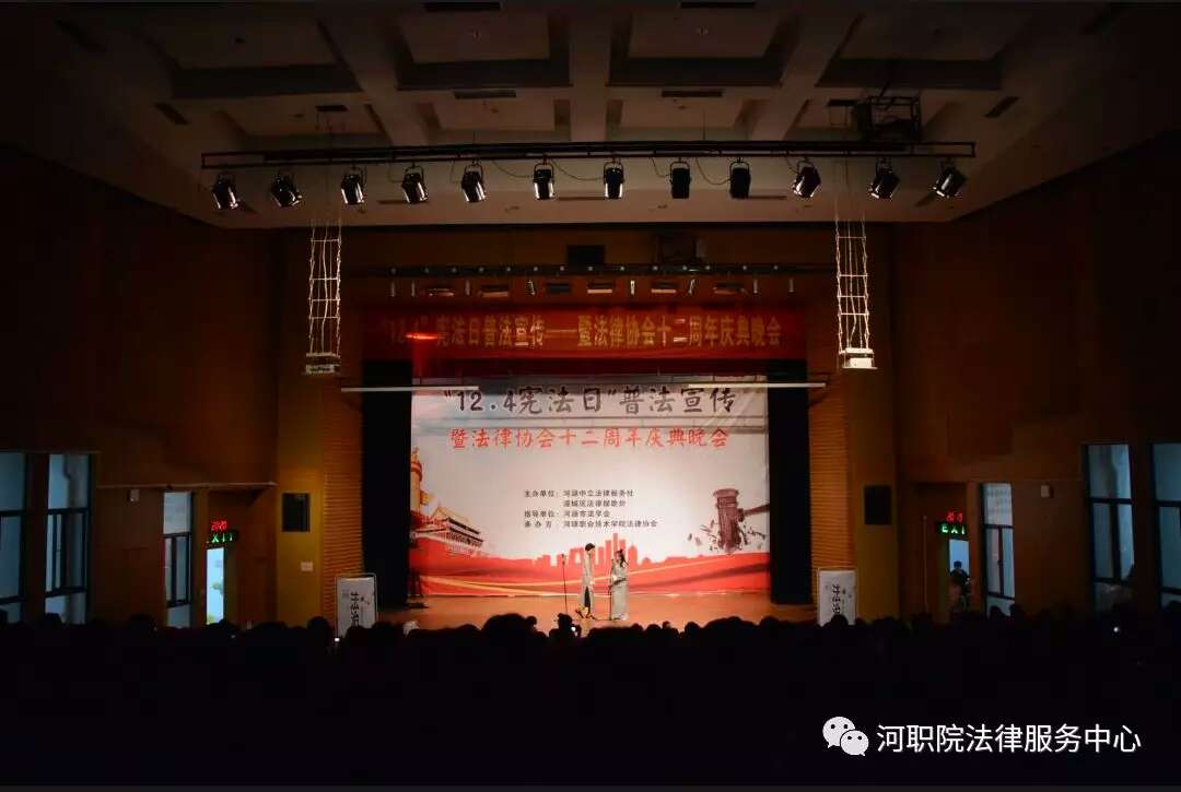 l2月4日,在第五个国家宪法日来临之际,我校在图书馆学术报告厅举行“12.4宪法日”普法晚会。晚会由河源中立法律服务社协同源城区法律援助处主办,河源市法学会指导,易游app入口站官网法律协会承办。