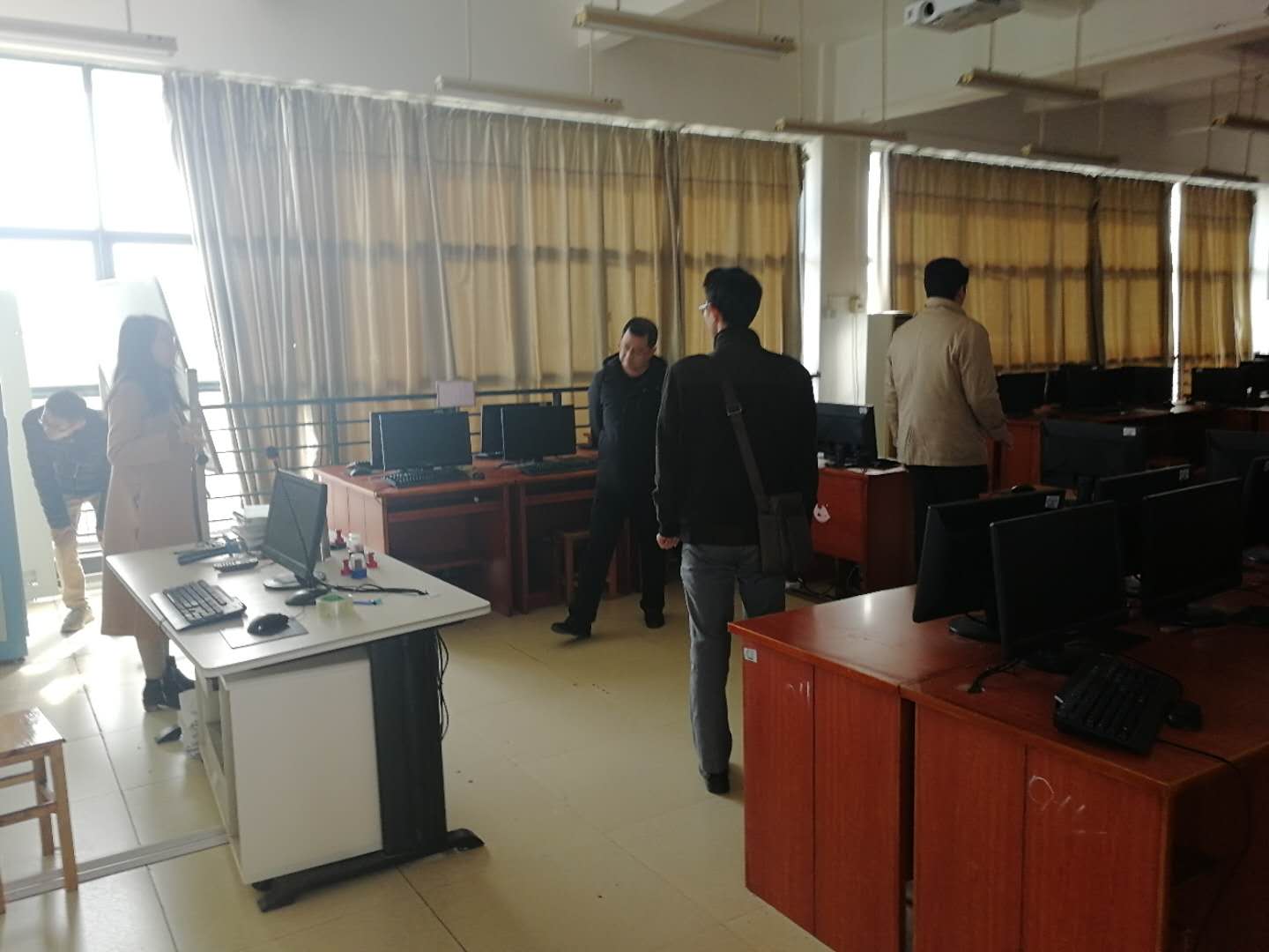 为全面贯彻落实教育部和省教育厅关于加强实验实训室安全管理工作的指示精神和通知要求,1月9日下午,工商管理学院院长俞彤、副院长张颖带领全体专业主任、实训室管理员对工商管理学院实训室安全工作进行专项检查,对学院实训实验室安全管理工作进行再督促、再落实。
