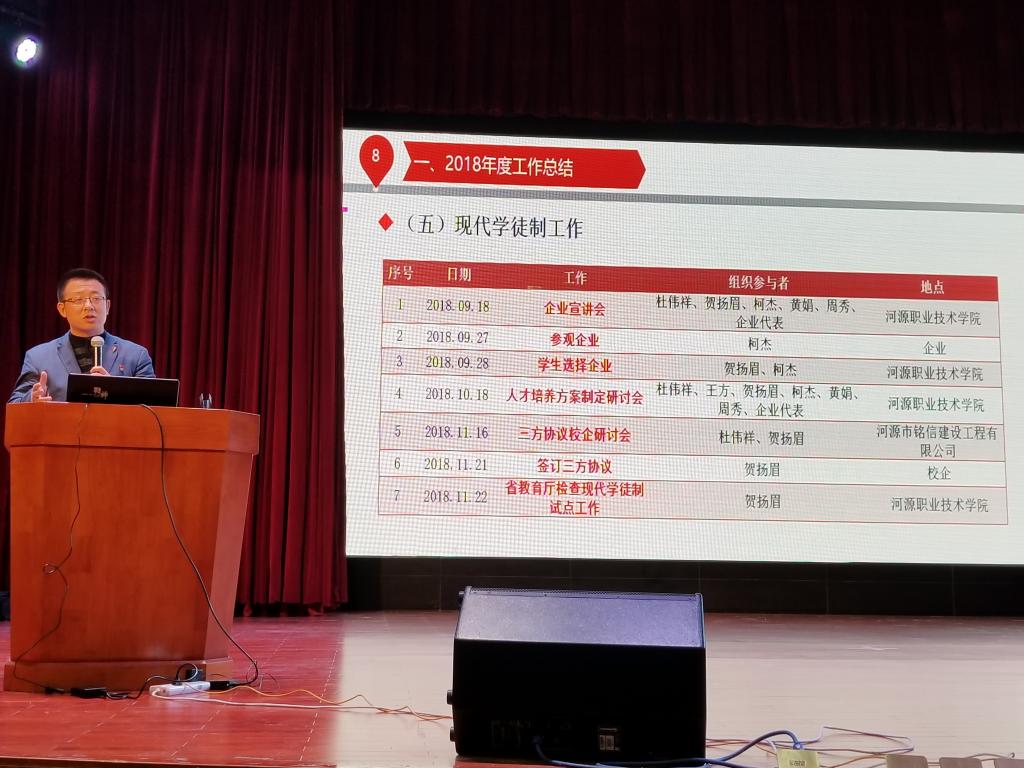 会议共分两个环节,首先由服装、环艺、动漫、园林、音表、音教、美教、学前教育8个专业主任汇报过去一年的专业建设工作。他们用言简意赅的话语,生动形象地讲解了专业成绩和不足,其中主要包括日常教学工作、技能大赛、教科研、获奖情况、对外技术服务以及存在问题。尤其是环境艺术设计专业主任贺扬眉和大家分享了现代学徒制的心得体会,从现代学徒制建设的努力和艰辛,到现在和企业成功建立了一对一的指导服务,都进行了详细的阐述。接着,由学院负责人杜伟祥对本学期工作进行总结。杜伟祥院长肯定了每个专业建设的成绩,同时也指出专业发展的不平衡,希望教师们要心怀信念、砥砺前行,在课改科研社会服务上,努力挖掘、静心钻研,给自己一个平台。此外,杜伟祥院长还和老师们一起学习了《新时代高校教师职业行为十项准则》和《易游app入口站官网工作人员八小时以外监督管理办法(试行)》这两个文件精神,希望老师们传播优秀文化,带头践行社会主义核心价值观,弘扬真善美,传递正能量,指出老师们应在工作之外的八小时,规范和约束自己的言行举止,注重社会形象,不得传播与政策方针不一致的言论。