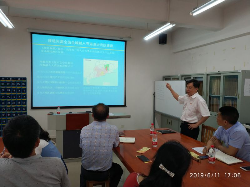 韦书记为全体党员解读《粤港澳大湾区发展规划纲要》,并针对规划纲要的背景、内容及重要意义给大家进行了详细讲解。建设粤港澳大湾区是新时代推动形成全面开放新格局的新举措,我们要认真学习贯彻习近平总书记关于粤港澳大湾区建设重要论述精神和对广东重要讲话、重要指示批示精神,深刻学习,强化机遇意识,进一步提振信心、凝聚力量,形成推动大湾区建设的强大合力,以推动粤港澳大湾区建设为契机,培养适应社会需求人才,融入大湾区高职教育的合作发展。