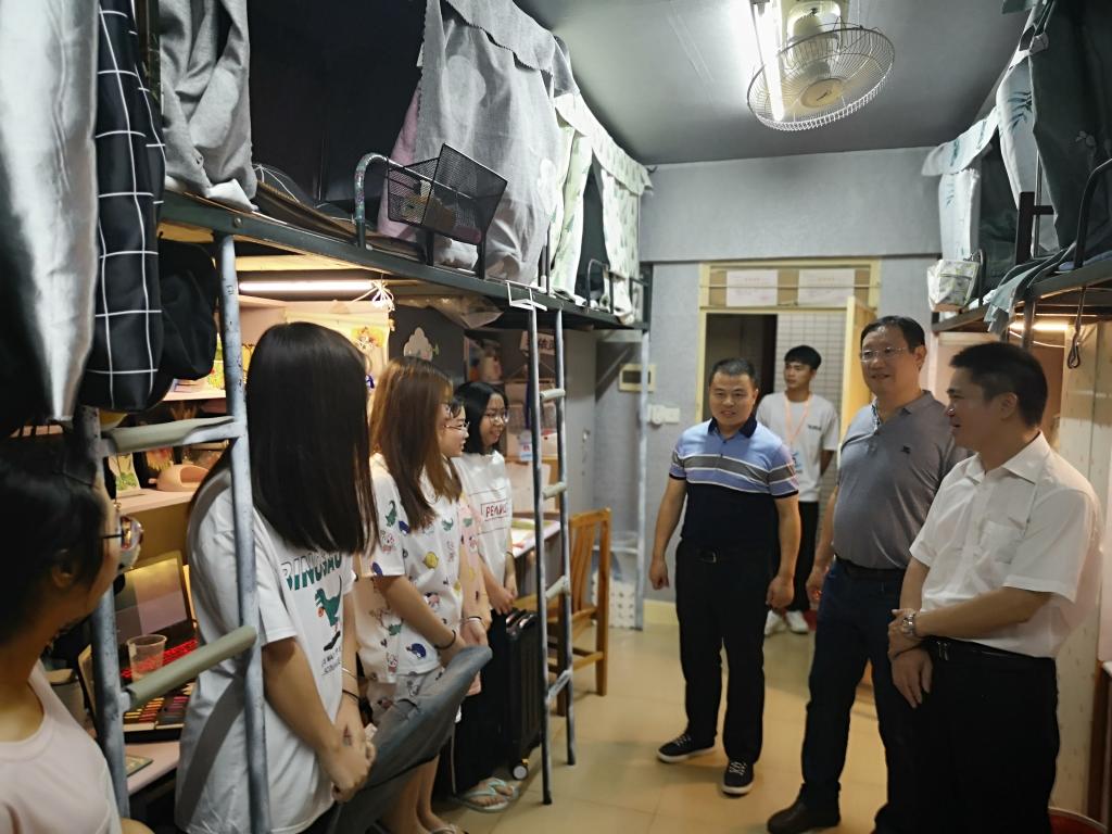 为进一步加强宿舍安全管理工作,做好学院宿舍安全隐患排查治理工作,有效遏制各类安全事故的发生,确保学生生命及学校财产安全,9月26日晚,副校长袁光华、电信学院院长王富宽、党总支副书记徐国辉、副院长周永福、团总支书记杨日奎、全体辅导员、团总支学生会各部门、2019级学长等132人一同走访2019级新生宿舍。