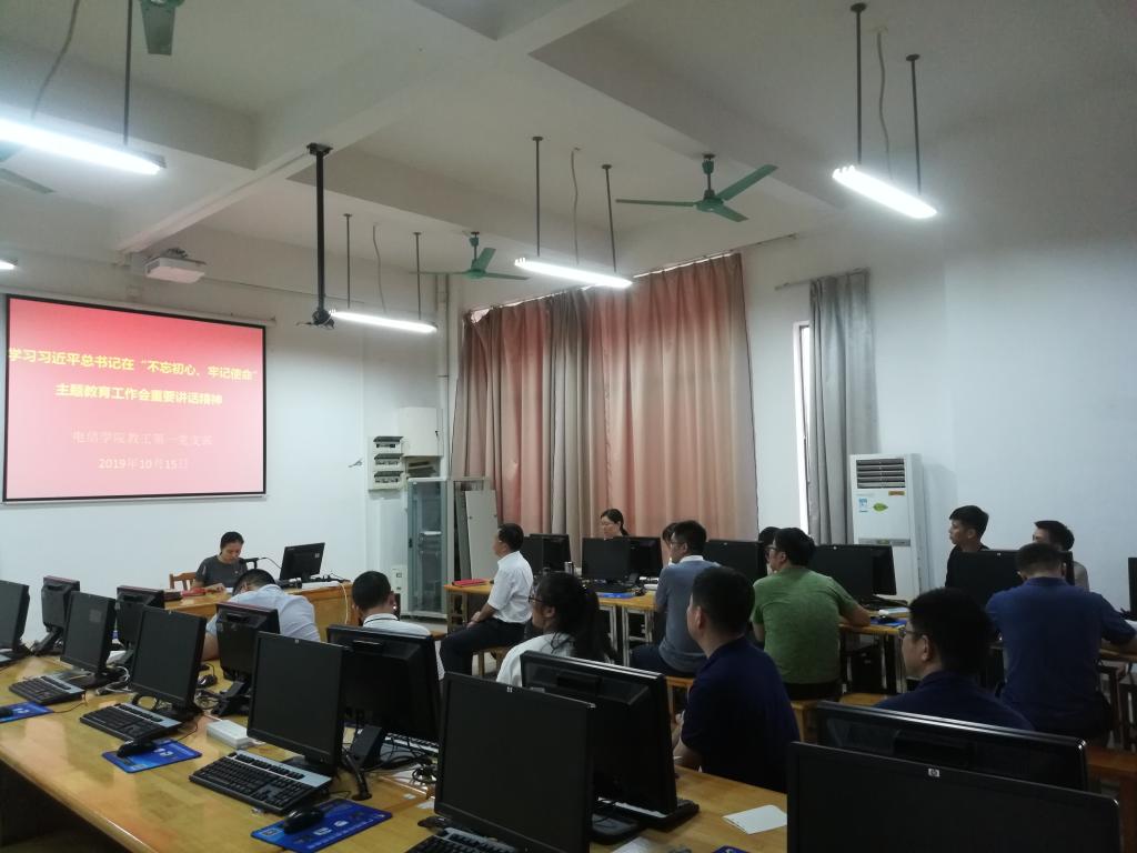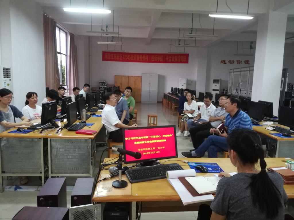 为了进一步推动学校“不忘初心、牢记使命”主题教育深入开展,对照《易游app入口站官网关于开展“不忘初心、牢记使命”主题教育实施方案》,结合本支部实际情况,电信学院教工第一党支部于10月15日下午召开党员大会,共同学习习近平总书记关于“不忘初心、牢记使命”主题教育工作会议重要讲话精神。学校党委韦荣书记作为支部成员参会,电信学院教工第一党支部全体党员参加会议。