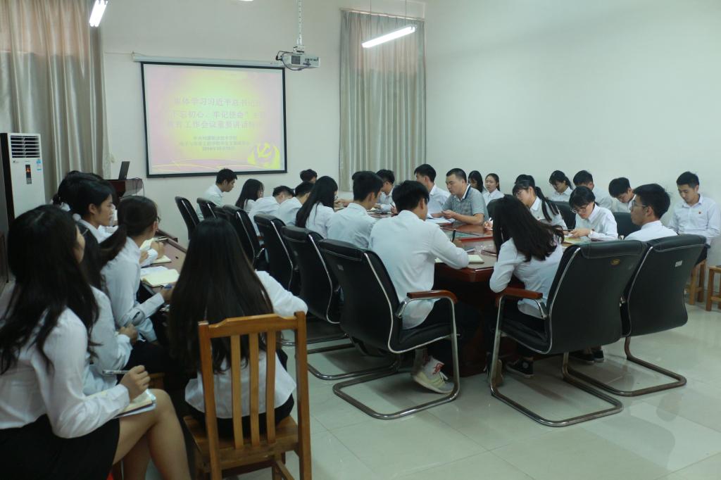 2019年10月15日下午,电信学院学生党支部在实训楼B307集中学习习近平总书记在“不忘初心、牢记使命”主题教育工作会议重要讲话精神。参加人员有学生党支部全体成员、负责党务工作全体成员。本次会议由团总支书记杨日奎主持。