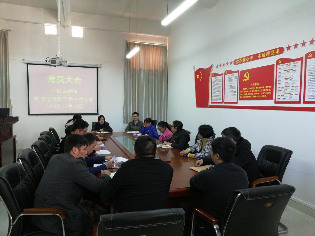 根据省委“不忘初心、牢记使命”主题教育领导小组《转发中央主题教育领导小组<关于第二批主题教育单位基层党组织召开专题组织生活会和开展民主评议党员的通知>的通知》(粤教组发〔2019〕33号)文件精神,按照《易游app入口站官网关于开展“不忘初心、牢记使命”主题教育实施方案》(河职院党字〔2019〕30号)有关要求,电信学院教工第一党支部于2019年12月10日在学院会议室B307召开了组织生活会和民主评议党员会议,会议由党支部书记高燕同志主持。