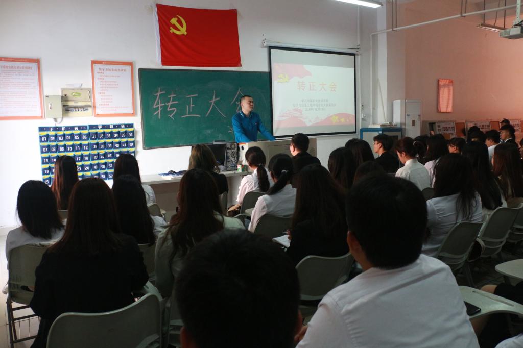 2019年12月13日下午,电信学院学生党支部在实训楼A216召开预备党员转正大会。参加大会人员有:学生党支部全体党员,大会由学生党支部书记杨日奎主持。