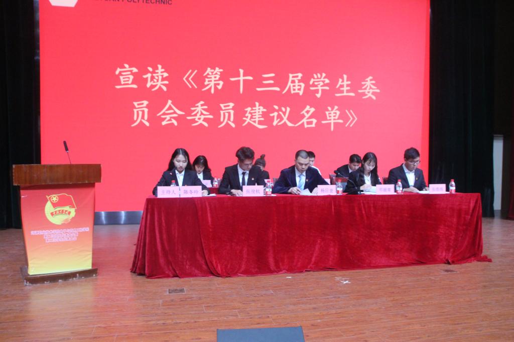 会议伊始,陈冬吟宣布进行第一项议程:宣读《第十三届学生委员会委员建议名单》,由各位代表表决通过。