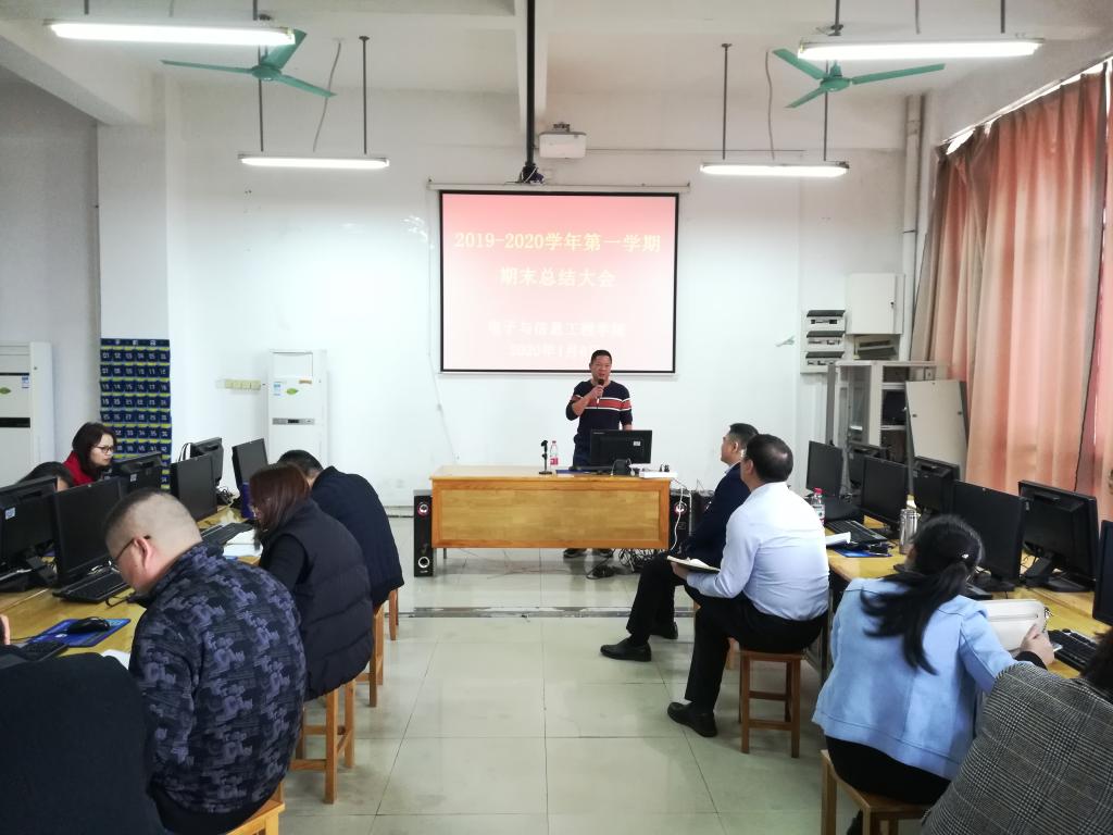 2020年1月6日上午,我院在实训楼A213召开2019-2020学年期末工作总结大会。学校袁光华副校长和学院全体教职工参加了此次会议,会议由周永福副院长主持。