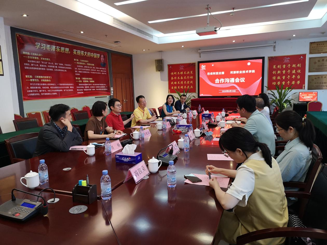 庄园何艇总裁介绍了庄园的发展战略规划情况和人才培养理念,并对建设周末在校生的见习基地、双元制校外实践基地等合作办学设想进行了阐述。